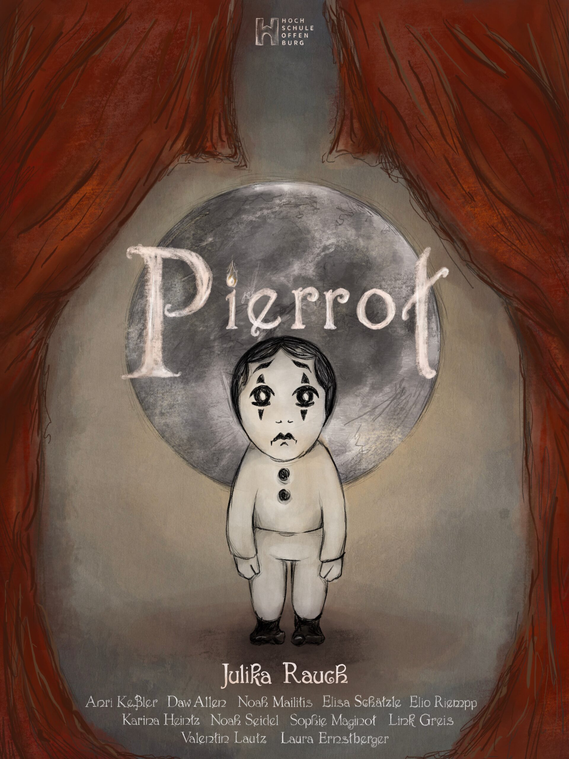 Seitdem ich anfing, Mediengestaltung und Produktion zu studieren, übte ich mich im Animieren. Die Kunst der 3D Animation gab ich schnell auf, blieb jedoch mit großem Interesse an der 2D Animation. Nach einigen ersten Übungen produzierte ich, gemeinsam mit talentierten Animateur:innen aus meinem Semester, meinen ersten animierten Kurzfilm „Pierrot“.